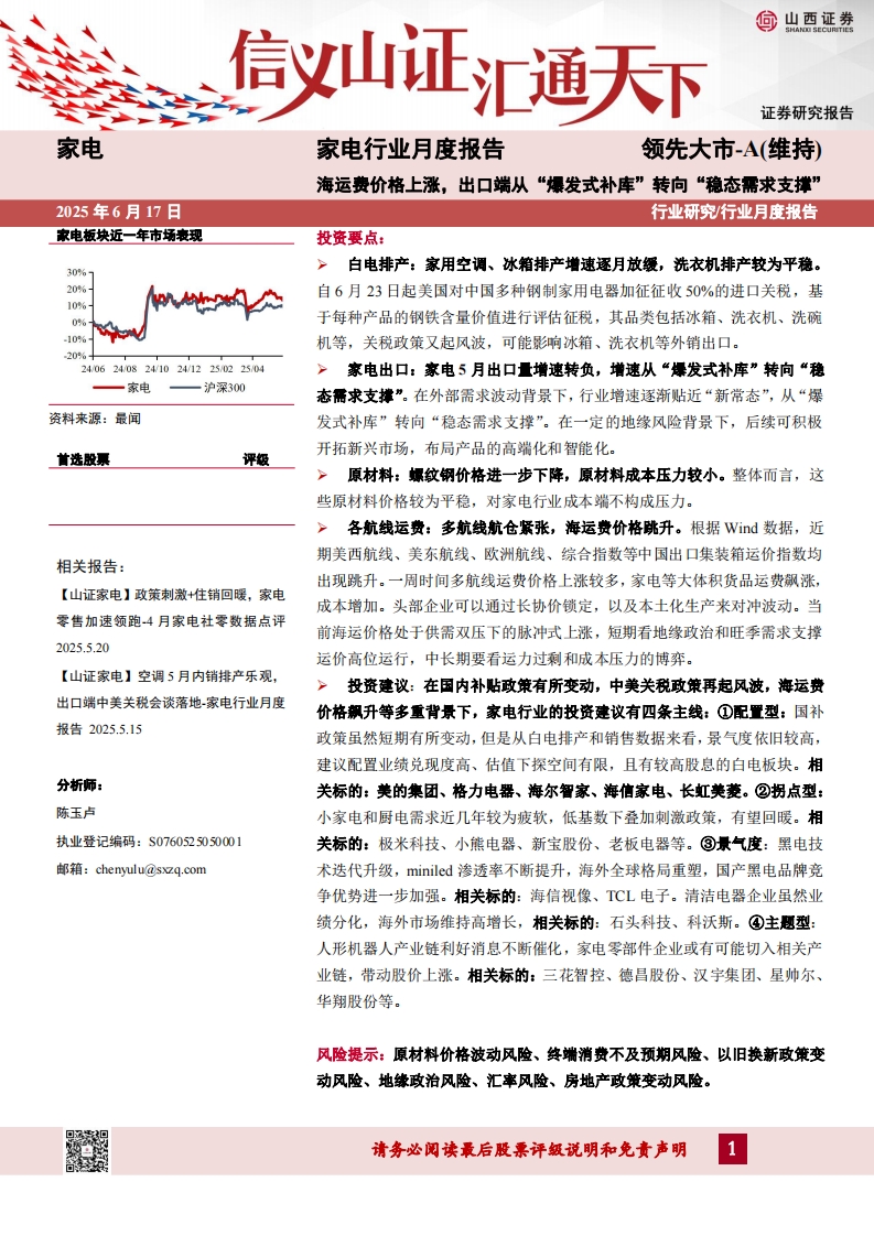 2025-06-17-山西证券--家电行业月度报告:海运费价格上涨,出口端从“爆发式补库”转向“稳态需求支撑”