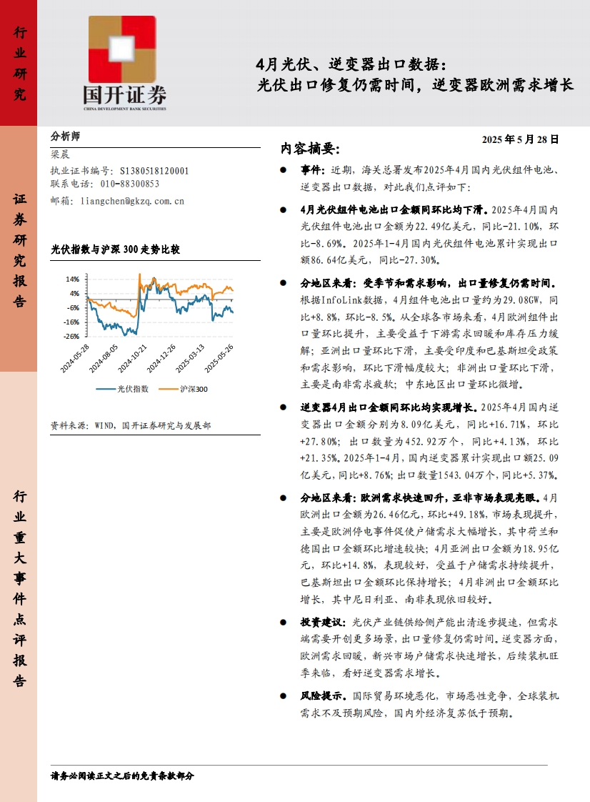 2025-06-16-国开证券--4月光伏、逆变器出口数据:光伏出口修复仍需时间,逆变器欧洲需求增长