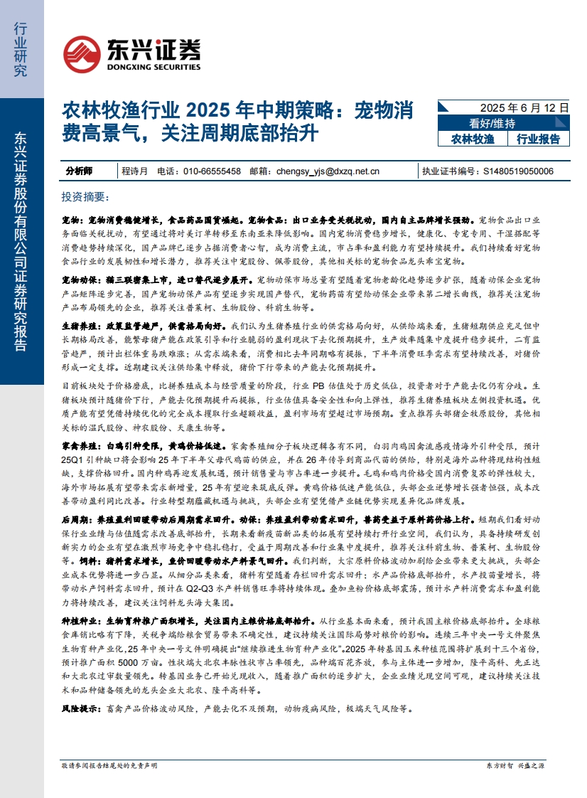 2025-06-13-东兴证券--农林牧渔行业2025年中期策略:宠物消费高景气,关注周期底部抬升