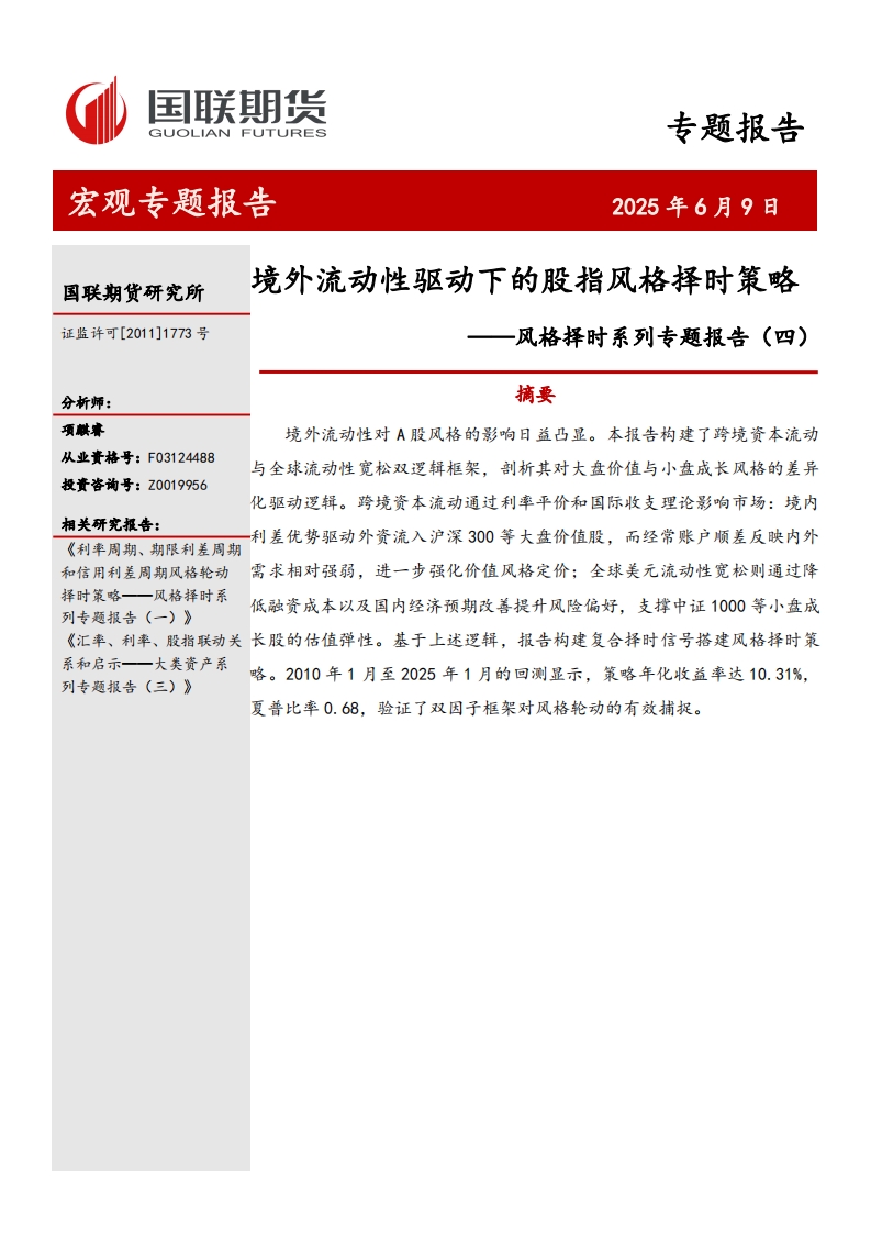 2025-06-10-国联期货-风格择时系列专题报告(四):境外流动性驱动下的股指风格择时策略