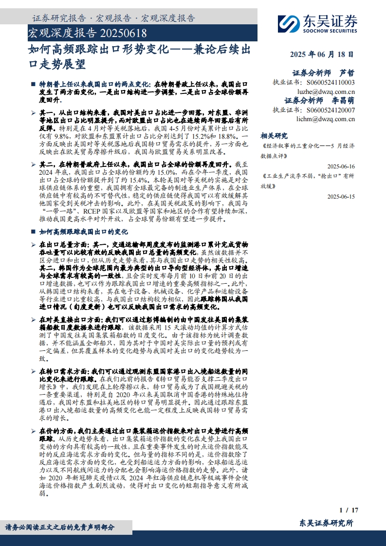 2025-06-18-东吴证券-宏观深度报告:兼论后续出口走势展望-如何高频跟踪出口形势变化