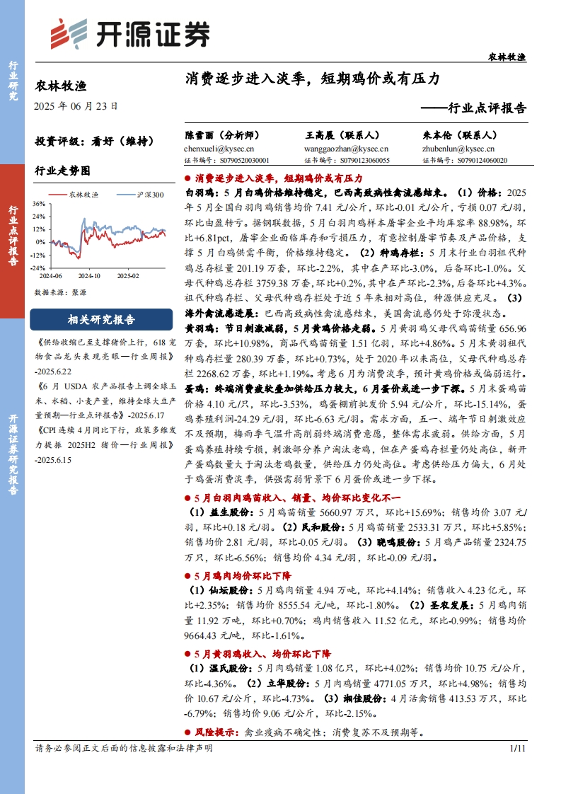 2025-06-23-开源证券-农林牧渔行业点评报告:消费逐步进入淡季,短期鸡价或有压力