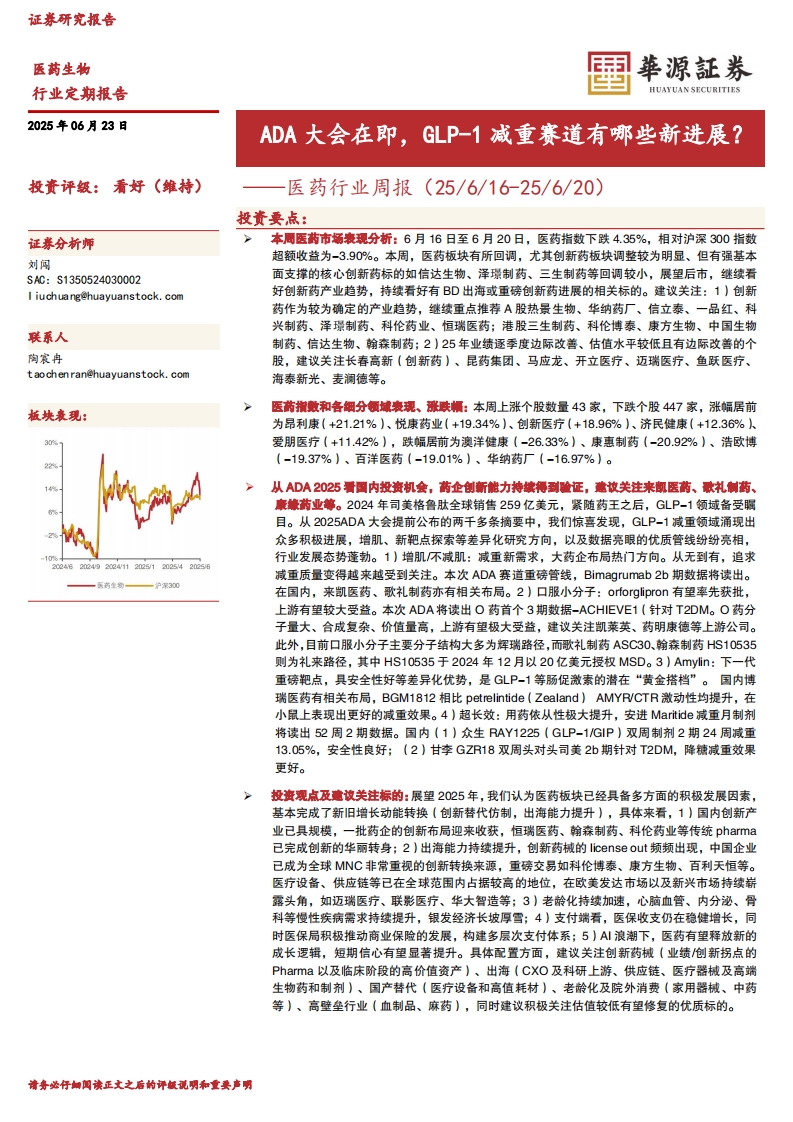 2025-06-23-华源证券-医药行业周报:ADA大会在即,GLP-1减重赛道有哪些新进展?