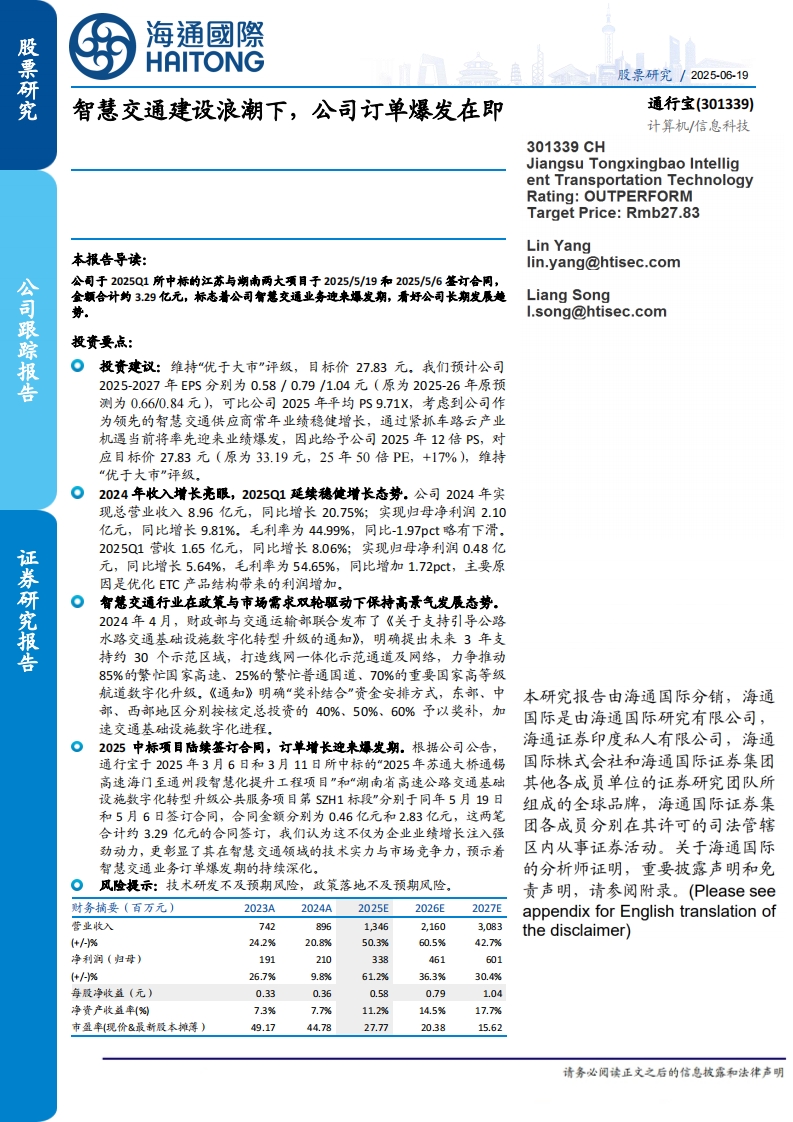 2025-06-22-海通国际-通行宝-智慧交通建设浪潮下,公司订单爆发在即