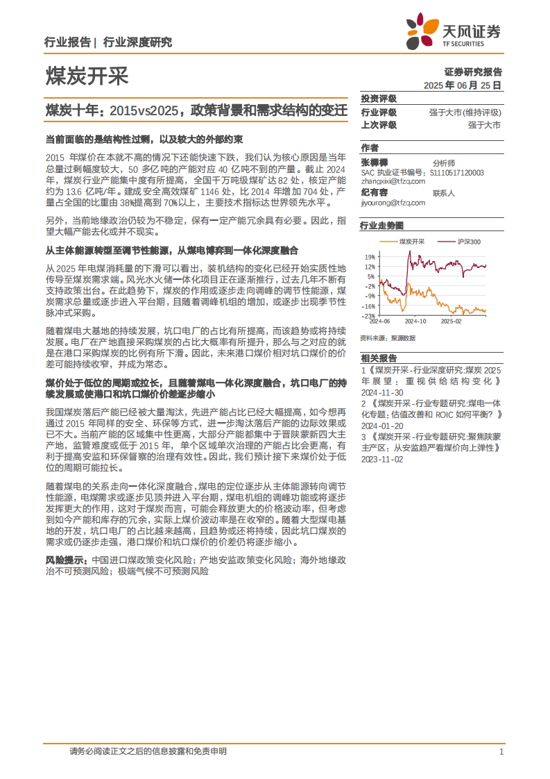 2025-06-25-天风证券--煤炭开采行业深度研究:煤炭十年:2015vs2025,政策背景和需求结构的变迁