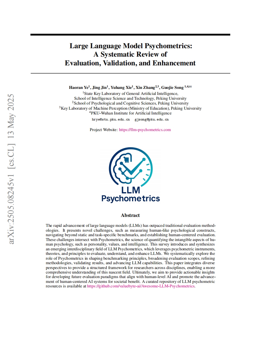 大语言模型心理测量学系统综述:评估、验证、增强(1)