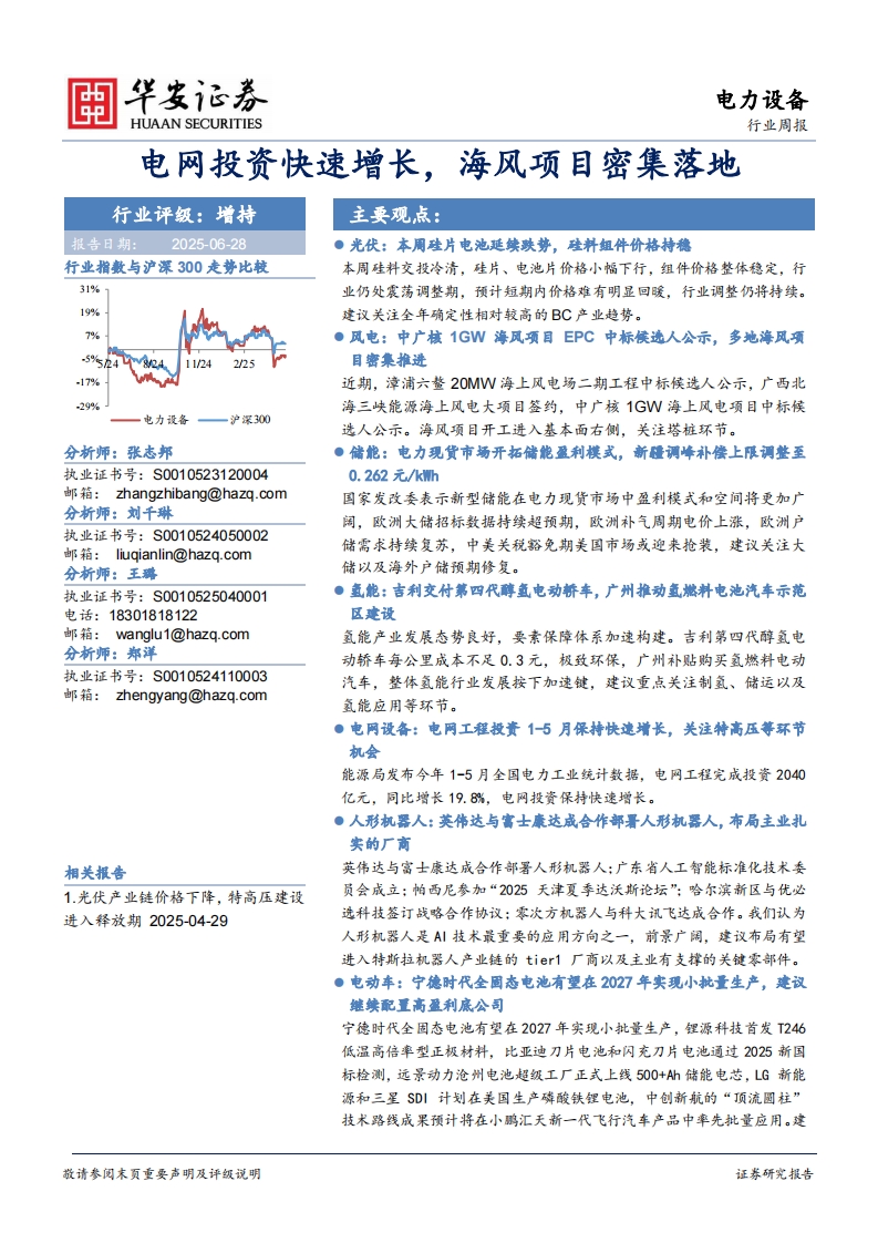 2025-06-30-华安证券--电力设备行业周报:电网投资快速增长,海风项目密集落地