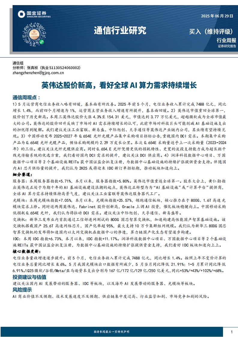 2025-06-30-国金证券--通信行业研究:英伟达股价新高,看好全球AI算力需求持续增长