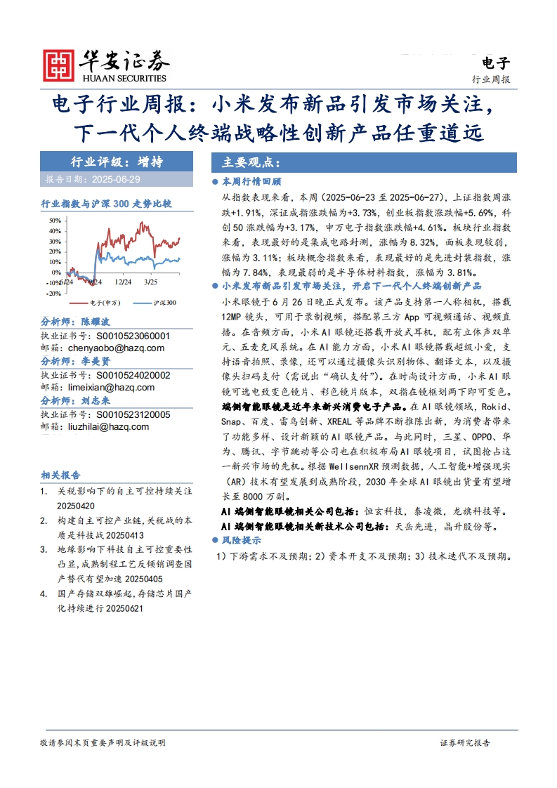 2025-06-29-华安证券-电子行业周报:小米发布新品引发市场关注,下一代个人终端战略性创新产品任重道远