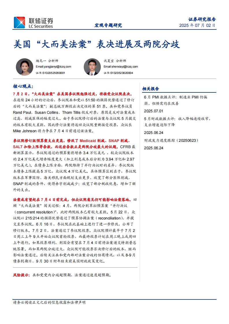 2025-07-02-联储证券-宏观专题研究:美国“大而美法案”表决进展及两院分歧