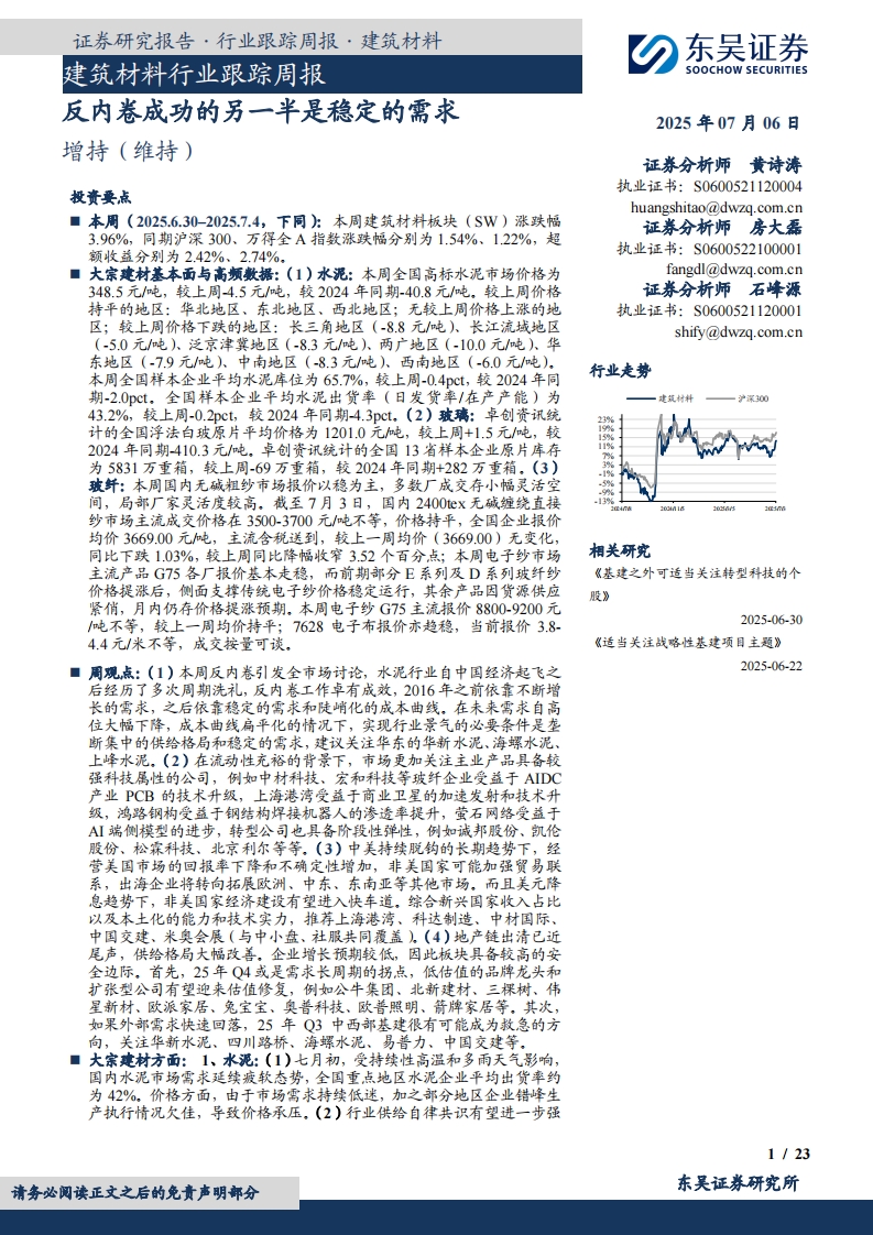 2025-07-06-东吴证券--建筑材料行业跟踪周报:反内卷成功的另一半是稳定的需求