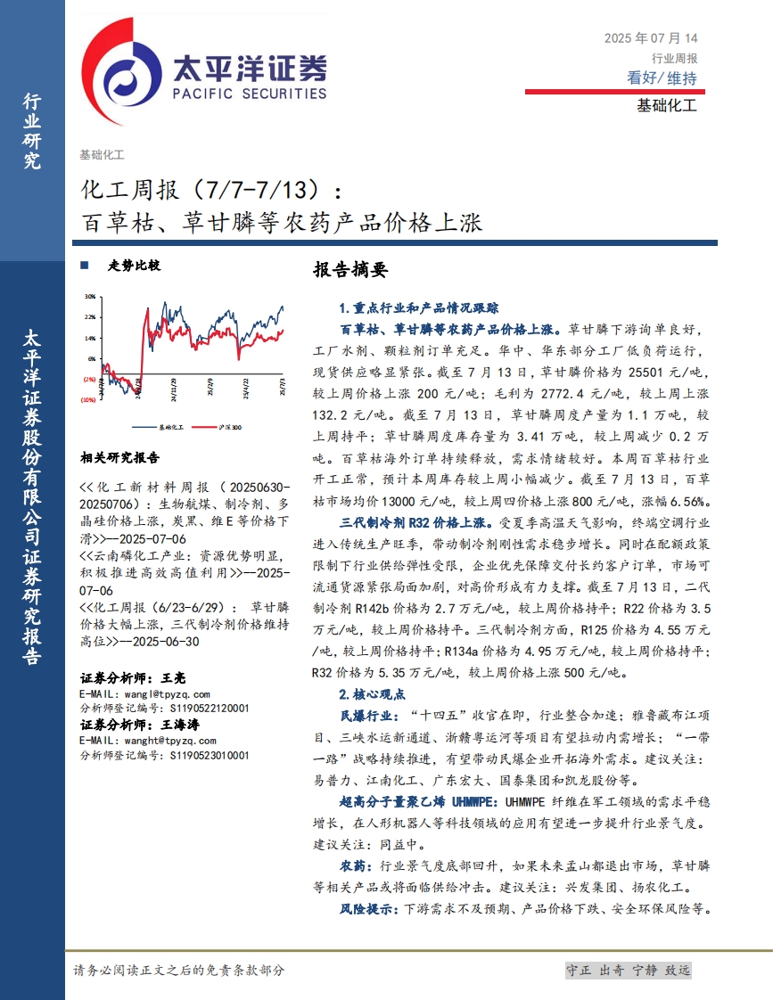 2025-07-14-太平洋--化工行业周报:百草枯、草甘膦等农药产品价格上涨