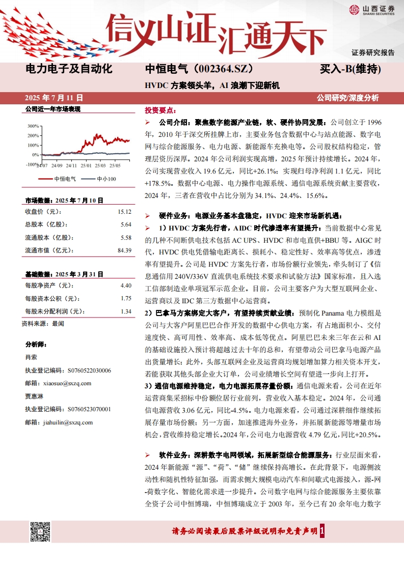 2025-07-11-山西证券-中恒电气-HVDC方案领头羊,AI浪潮下迎新机