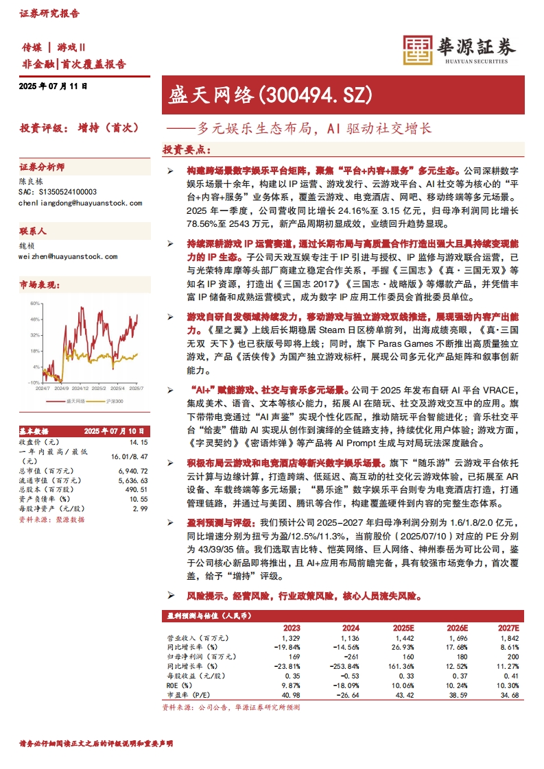 2025-07-11-华源证券-盛天网络-多元娱乐生态布局,AI驱动社交增长