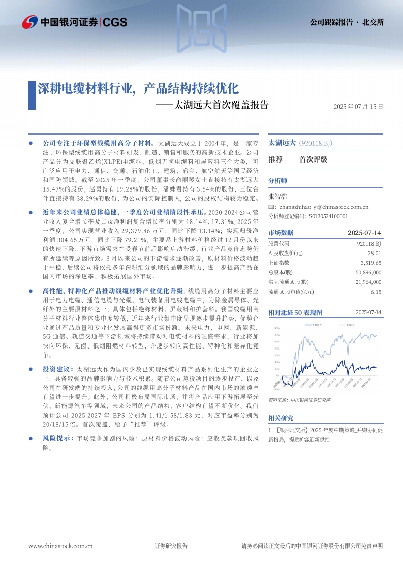 2025-07-17-中国银河-太湖远大-太湖远大首次覆盖报告:深耕电缆材料行业,产品结构持续优化