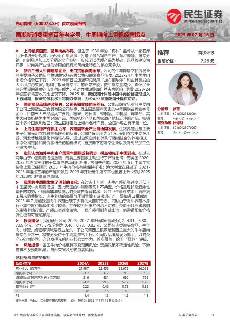 2025-07-16-民生证券-光明肉业-首次覆盖报告:国潮新消费重塑百年老字号;牛周期向上重视经营拐点