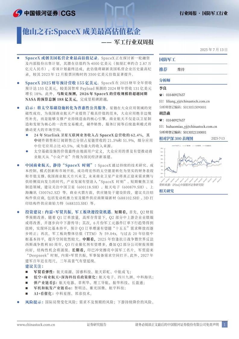 2025-07-16-中国银河-军工行业双周报:他山之石:SpaceX成美最高估值私企