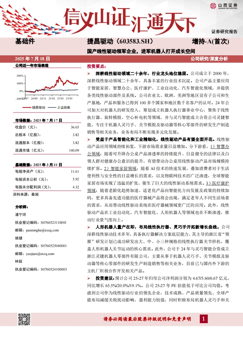 2025-07-18-山西证券-捷昌驱动-国产线性驱动领军企业,进军机器人打开成长空间