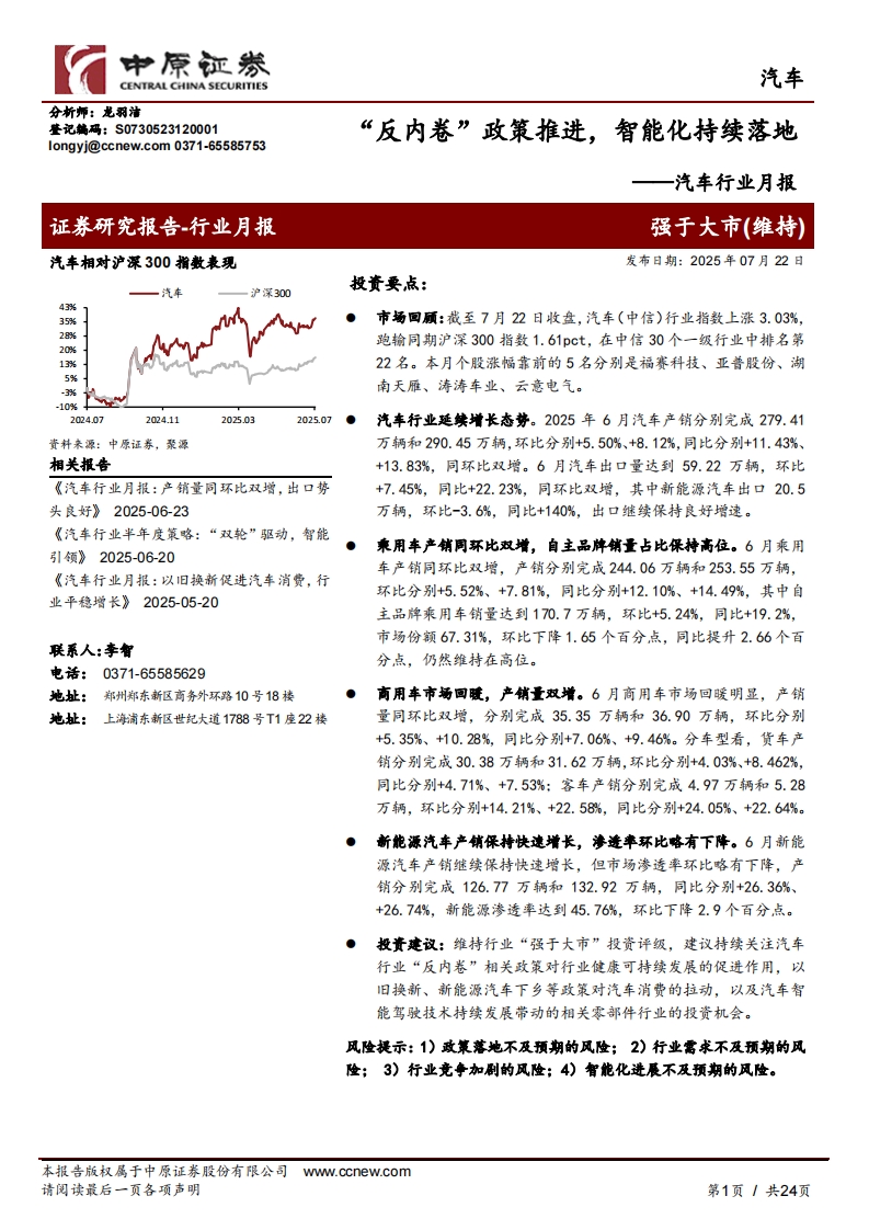 2025-07-23-中原证券-汽车行业月报:“反内卷”政策推进,智能化持续落地