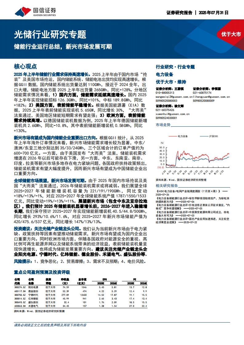 2025-07-31-国信证券--光储行业研究专题:储能行业运行总结,新兴市场发展可期