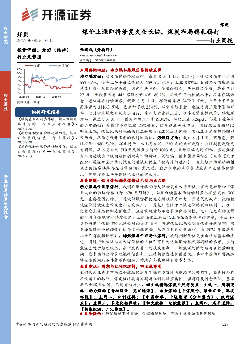 2025-08-03-开源证券--煤炭行业周报:煤价上涨即将修复央企长协,煤炭布局稳扎稳打行业周报
