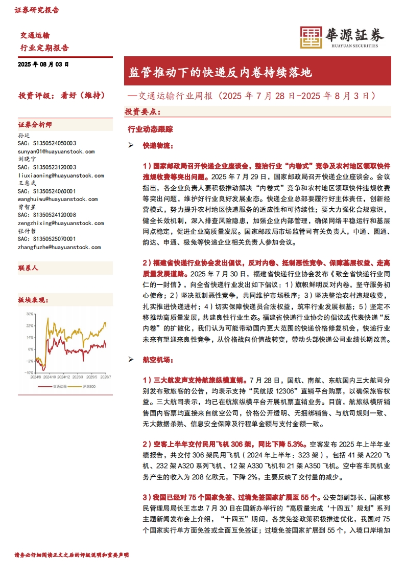 2025-08-03-华源证券--交通运输行业周报:监管推动下的快递反内卷持续落地