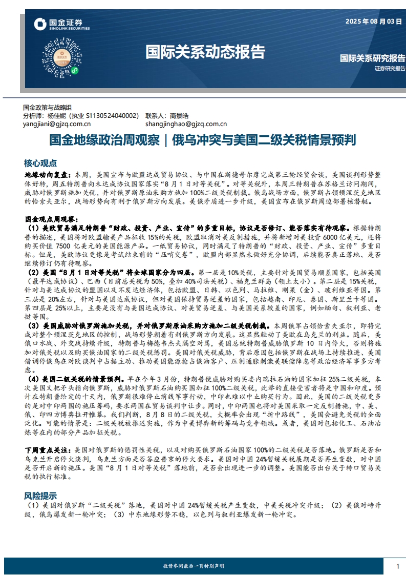 2025-08-04-国金证券-国际关系动态报告:国金地缘政治周观察|俄乌冲突与美国二级关税情景预判