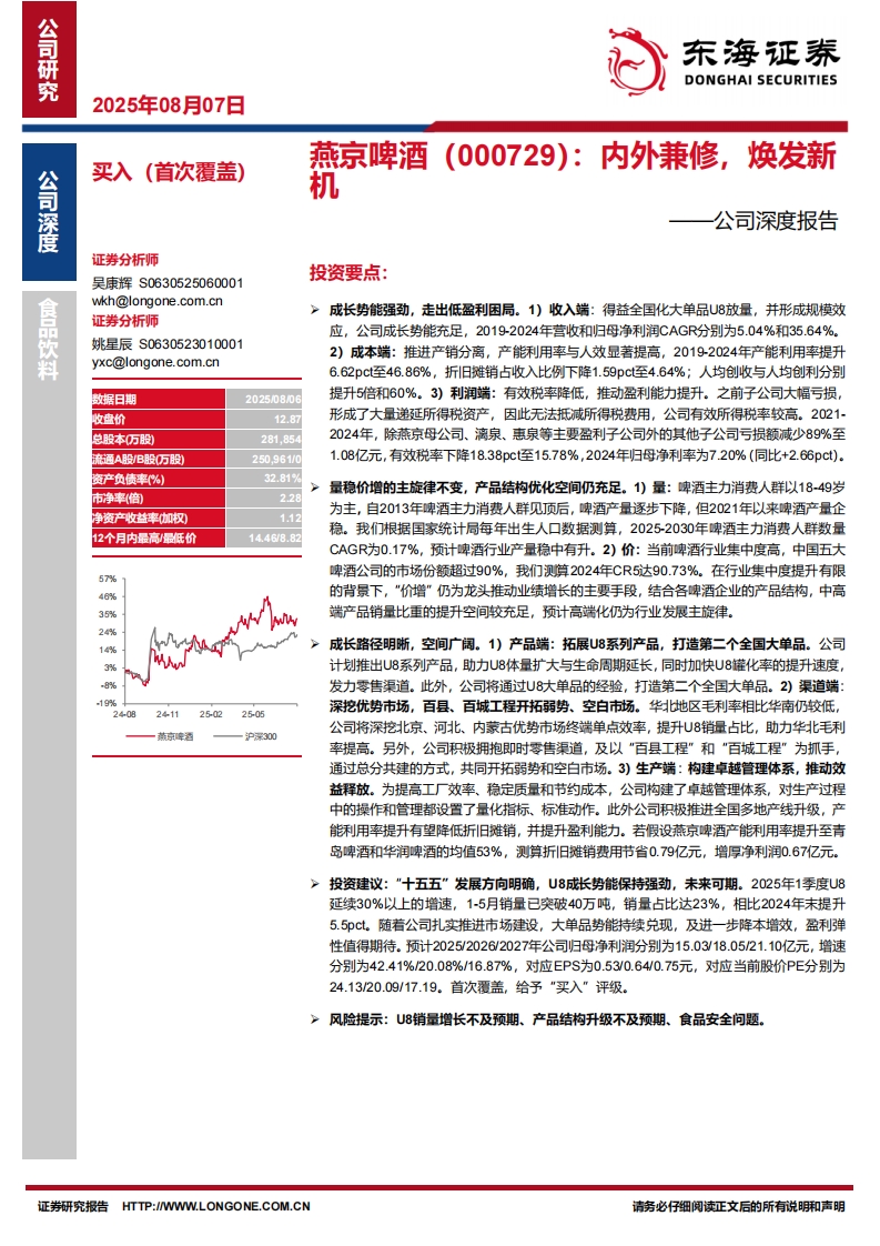 2025-08-07-东海证券-燕京啤酒-公司深度报告:内外兼修,焕发新机