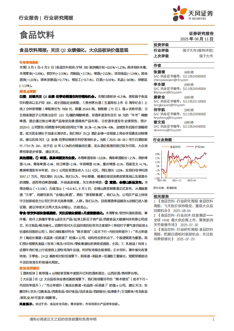 2025-08-12-天风证券--食品饮料行业周报:关注Q2业绩催化,大众品板块价值显现