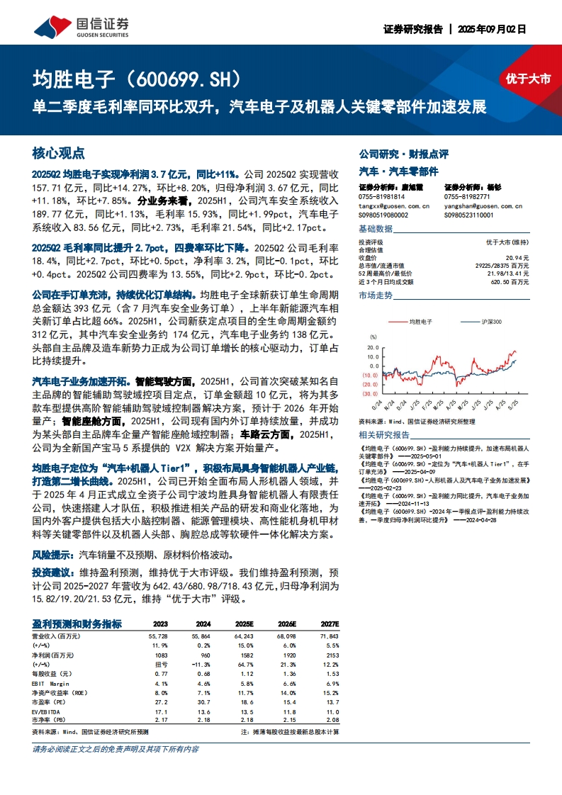 2025-09-02-国信证券-均胜电子-单二季度毛利率同环比双升,汽车电子及机器人关键零部件加速发展