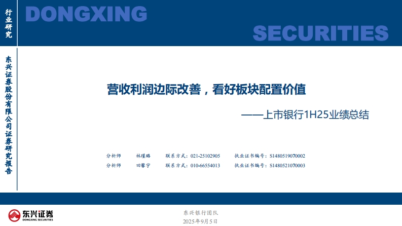 2025-09-05-东兴证券--上市银行1H25业绩总结:营收利润边际改善,看好板块配置价值