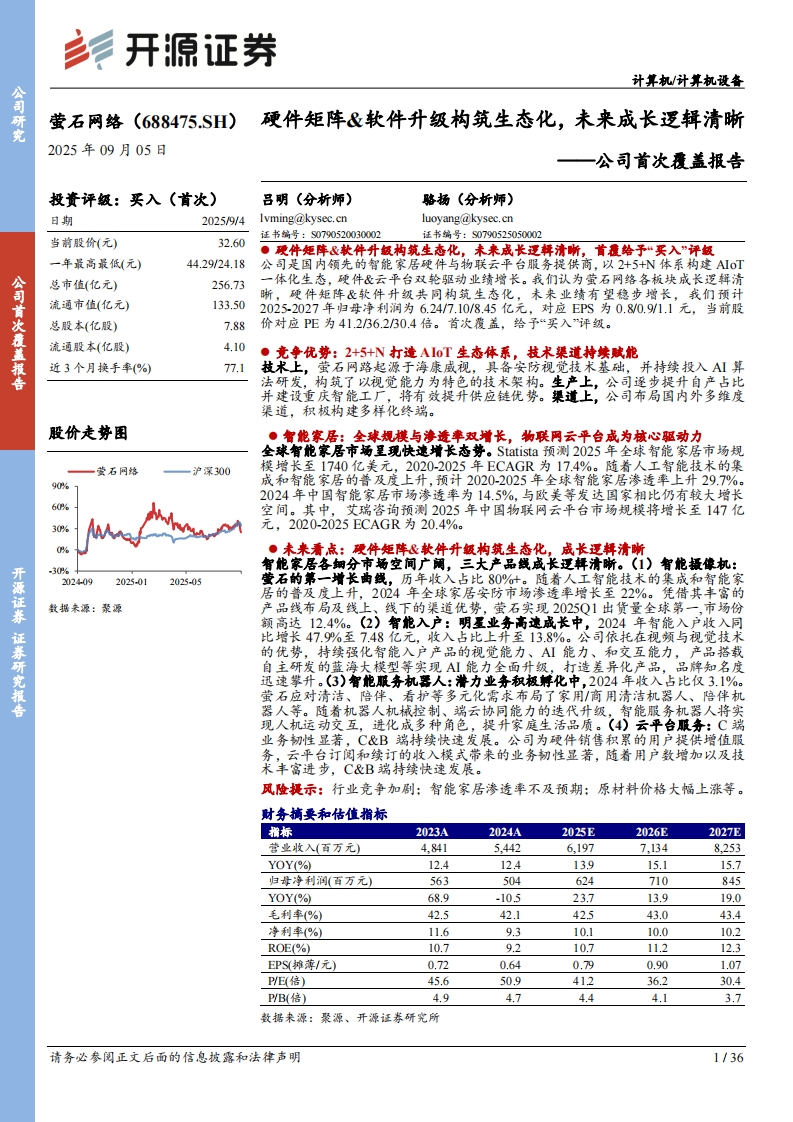 2025-09-05-开源证券-萤石网络-公司首次覆盖报告:硬件矩阵&软件升级构筑生态化,未来成长逻辑清晰