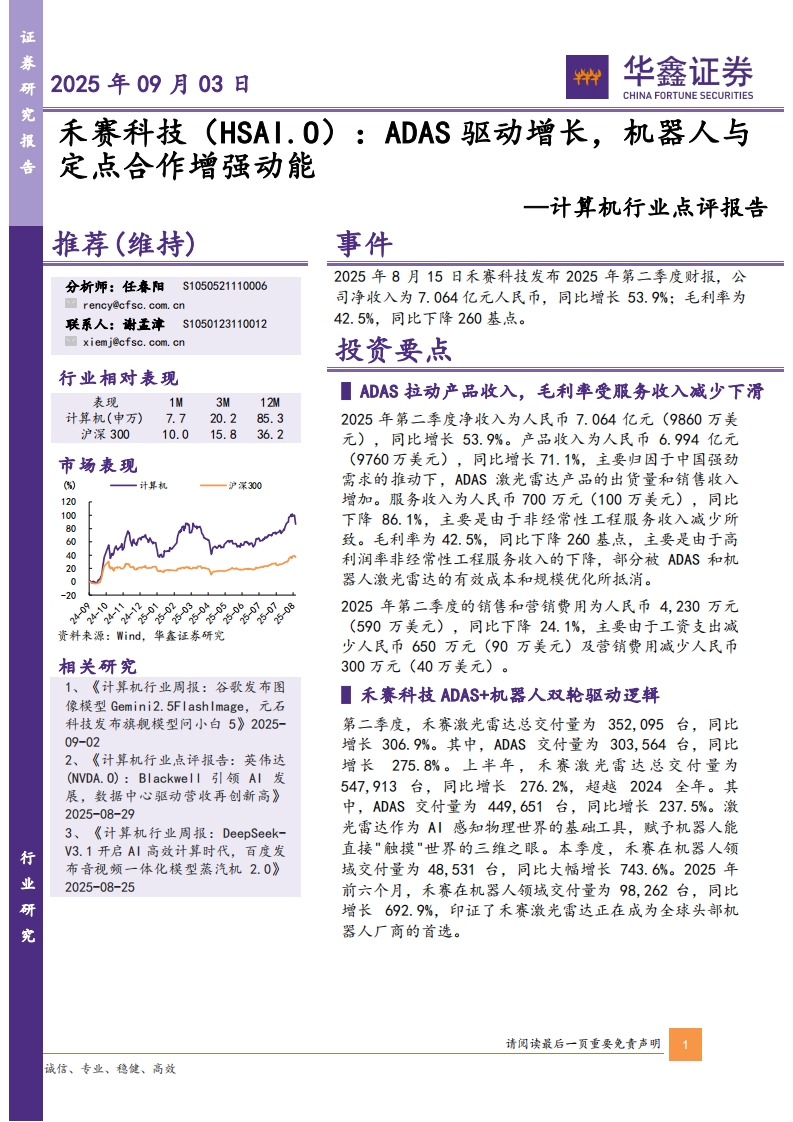 2025-09-04-华鑫证券-计算机行业点评报告:禾赛科技:ADAS驱动增长,机器人与定点合作增强动能