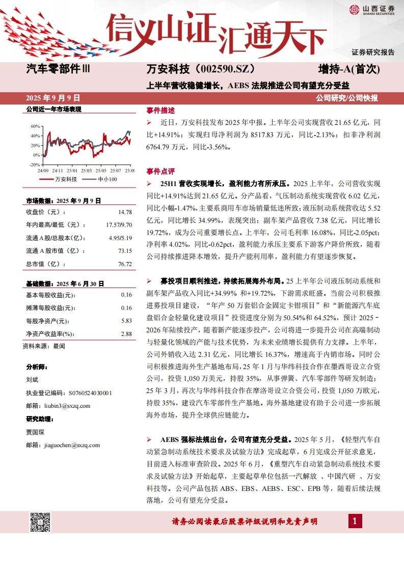 2025-09-09-山西证券-万安科技-上半年营收稳健增长,AEBS法规推进公司有望充分受益