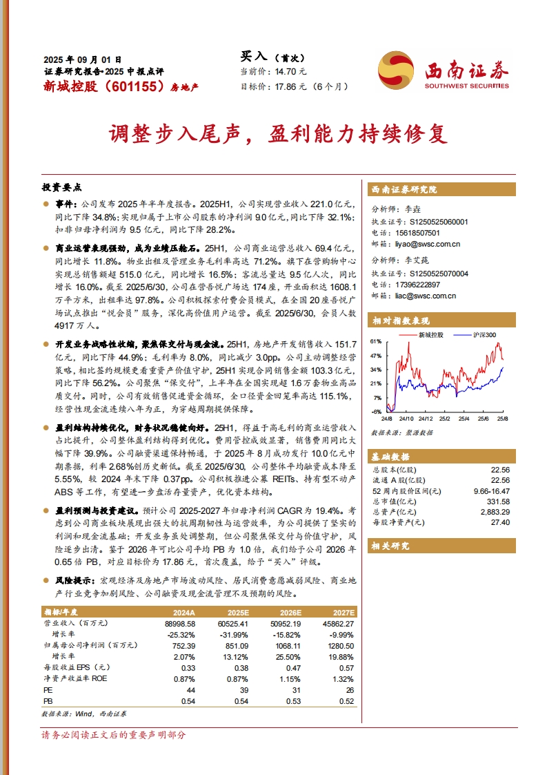 2025-09-09-西南证券-新城控股-2025中报点评:调整步入尾声,盈利能力持续修复