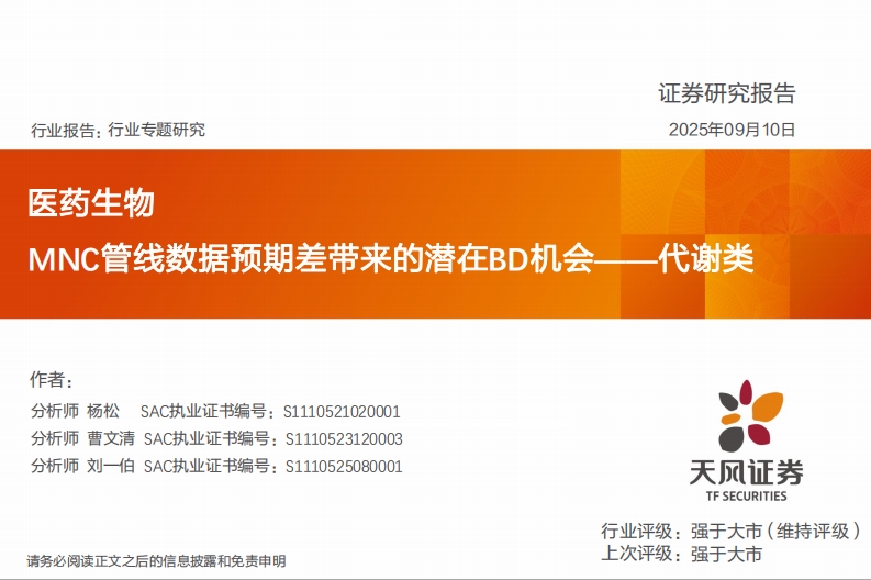 2025-09-10-天风证券--医药生物行业专题研究:MNC管线数据预期差带来的潜在BD机会——代谢类