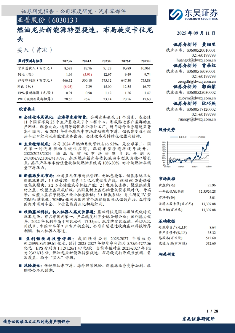 2025-09-12-东吴证券-亚普股份-燃油龙头新能源转型提速,布局旋变卡位龙头