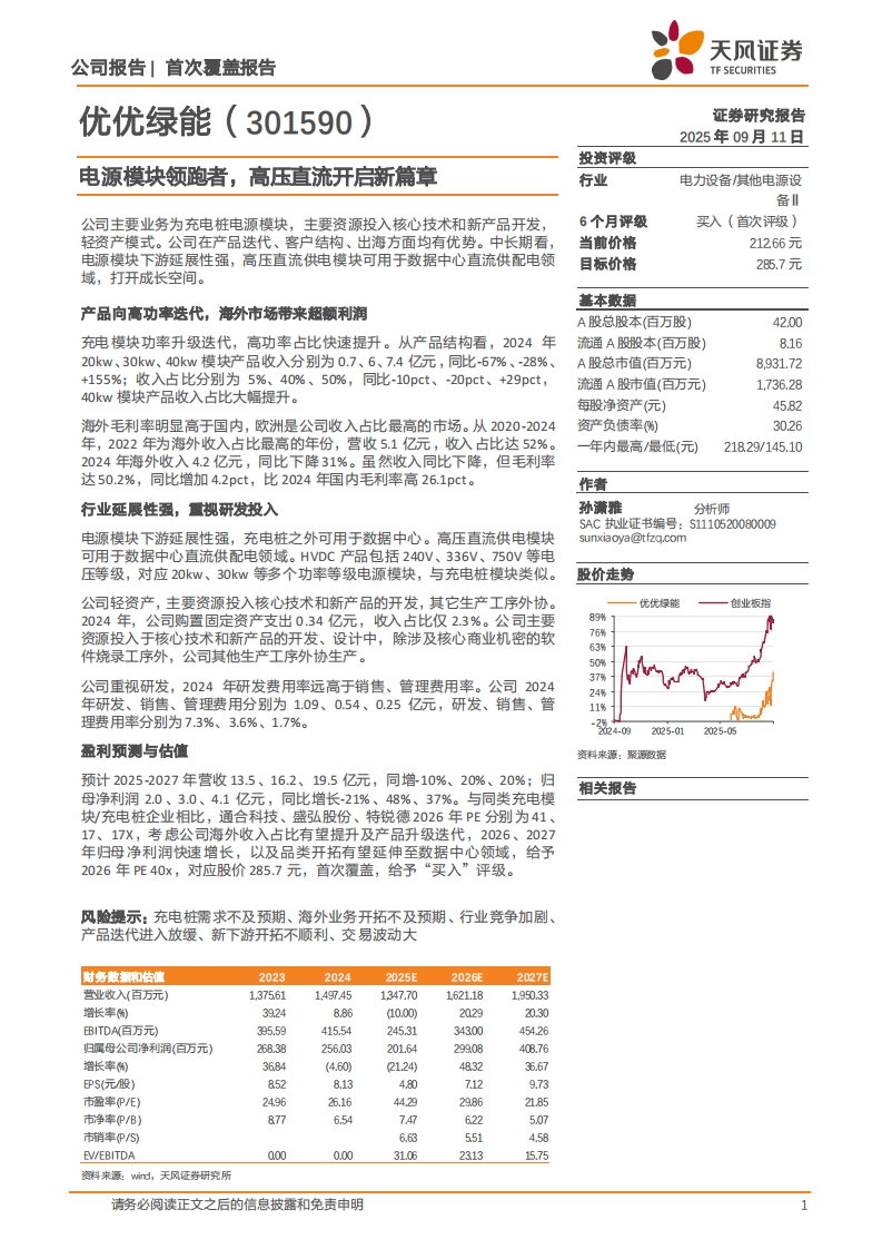 2025-09-11-天风证券-优优绿能-电源模块领跑者,高压直流开启新篇章