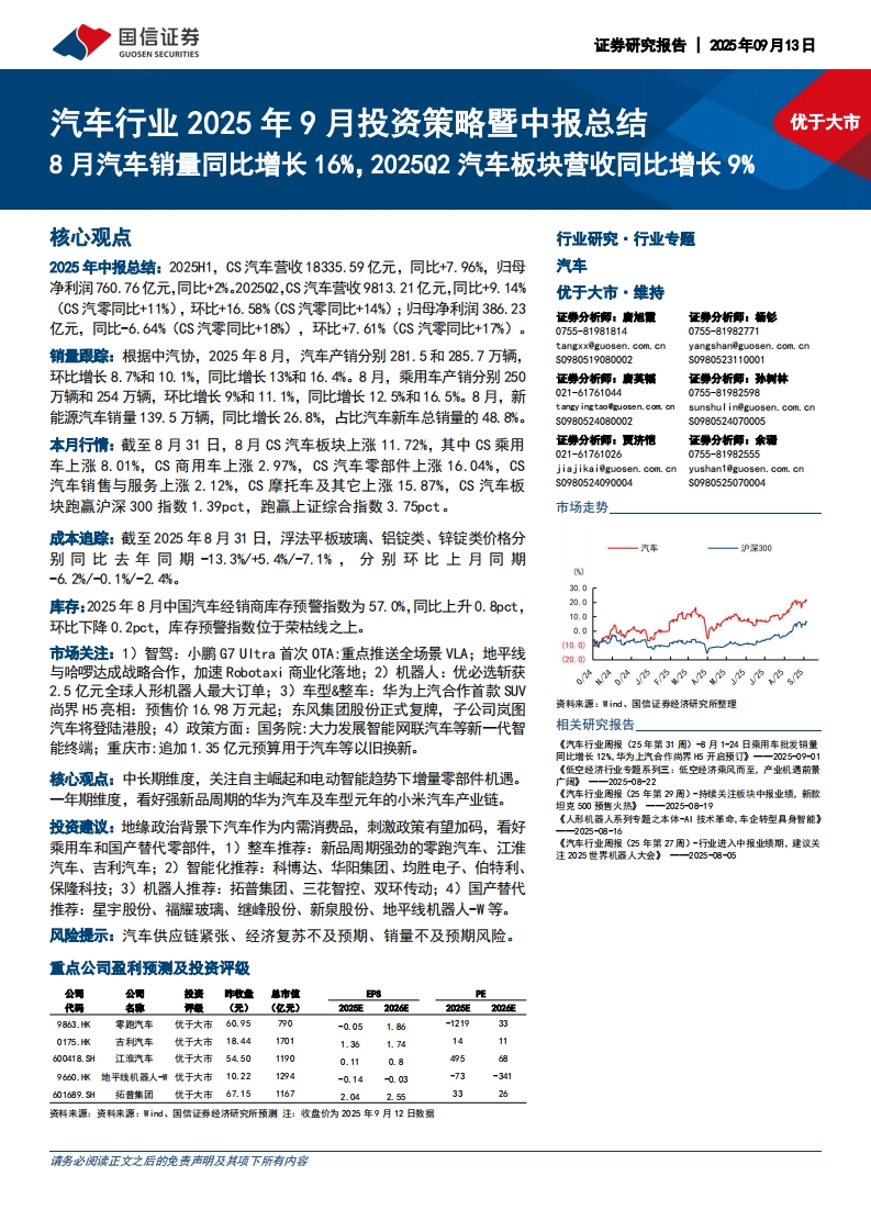 2025-09-15-国信证券--汽车行业2025年9月投资策略暨中报总结:8月汽车销量同比增长16%,2025Q2汽车板块营收同比增长9%