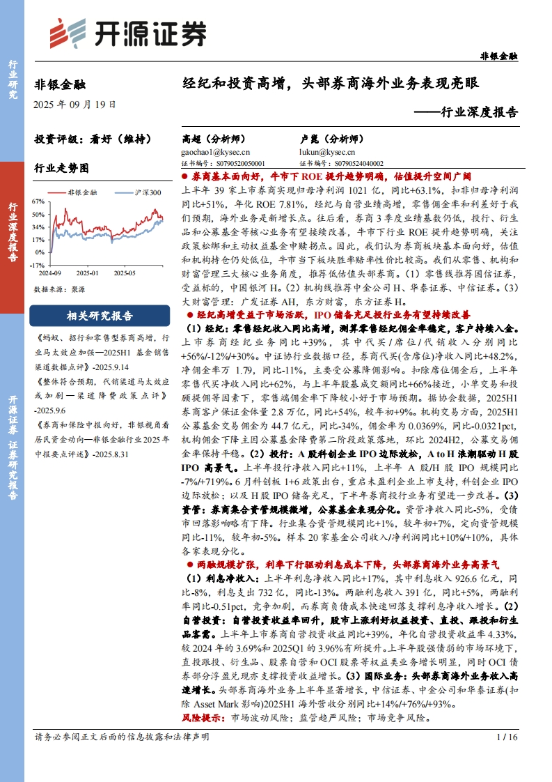 2025-09-19-开源证券--非银金融行业深度报告:经纪和投资高增,头部券商海外业务表现亮眼