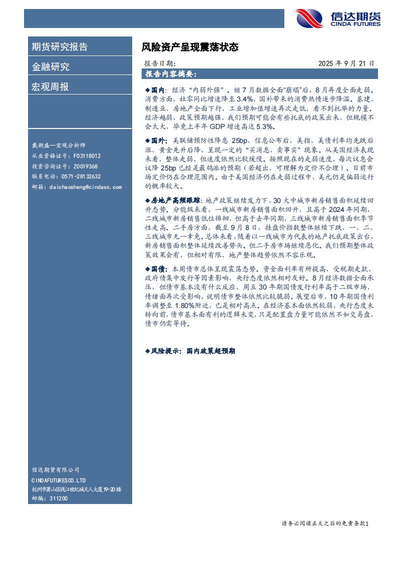 2025-09-22-信达期货-宏观周报:风险资产呈现震荡状态
