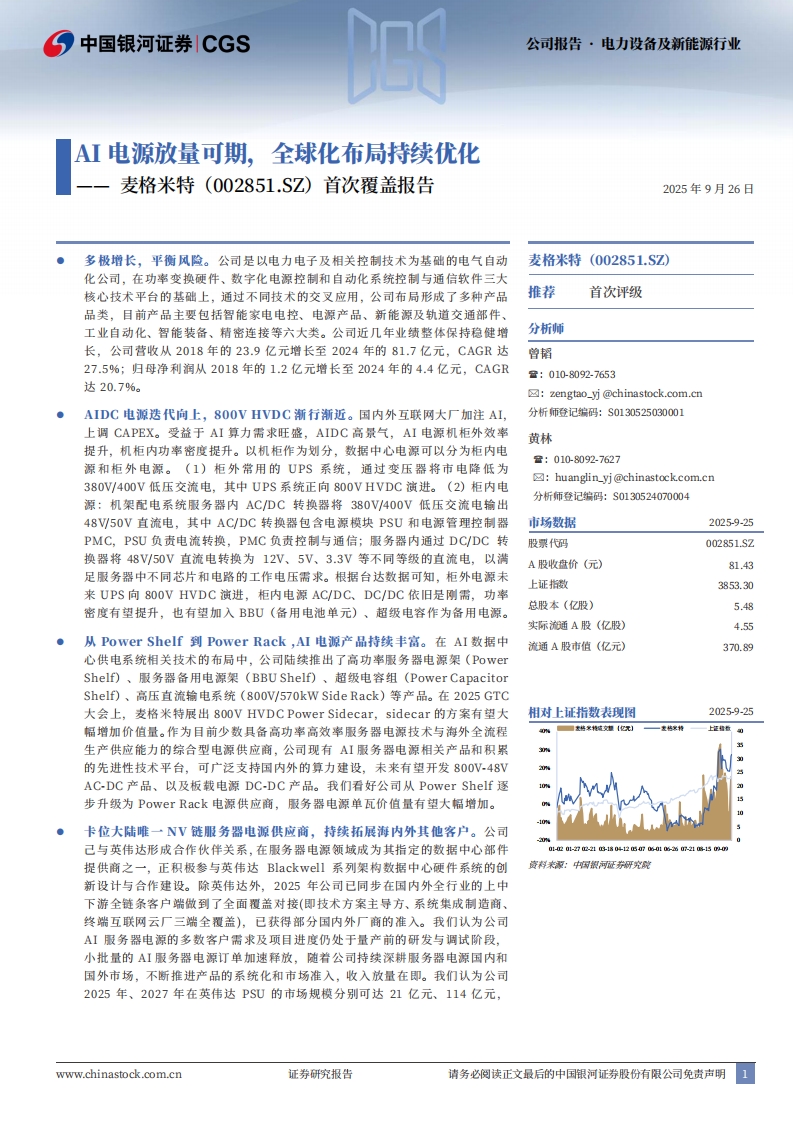 2025-10-09-中国银河-麦格米特-首次覆盖报告:AI电源放量可期,全球化布局持续优化