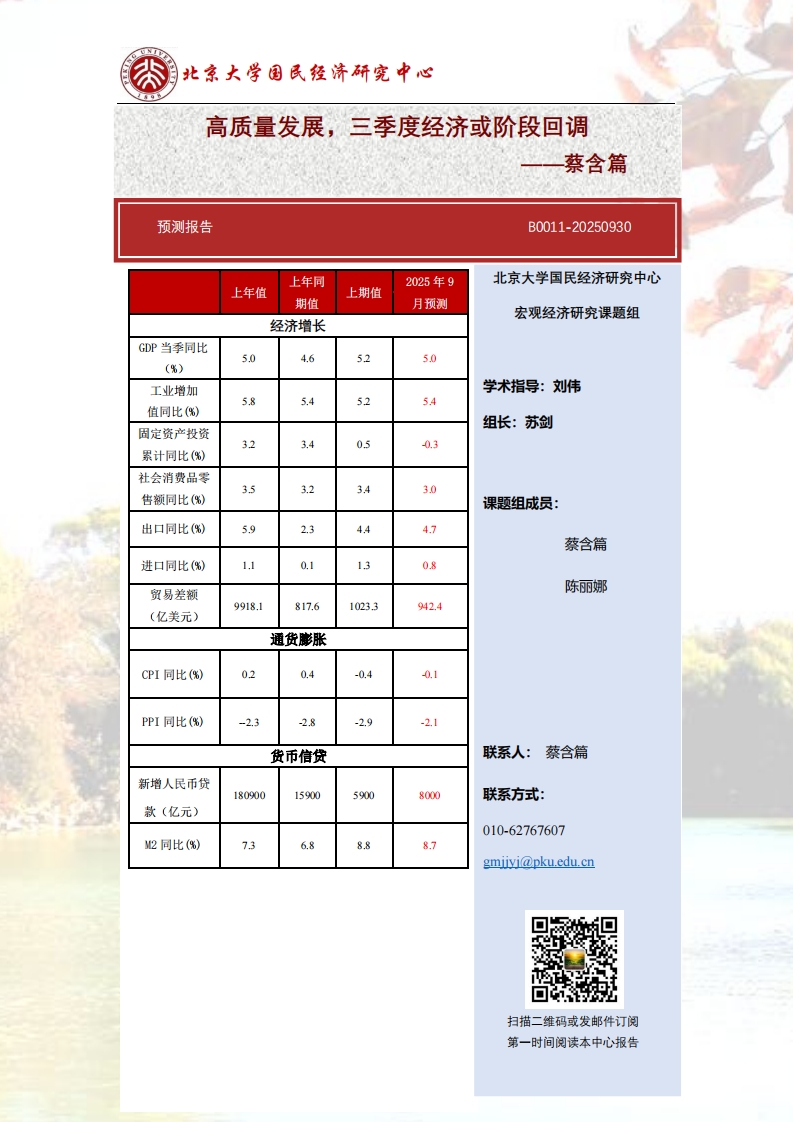 2025-10-09-北大国民经济研究中心-预测报告:高质量发展,三季度经济或阶段回调
