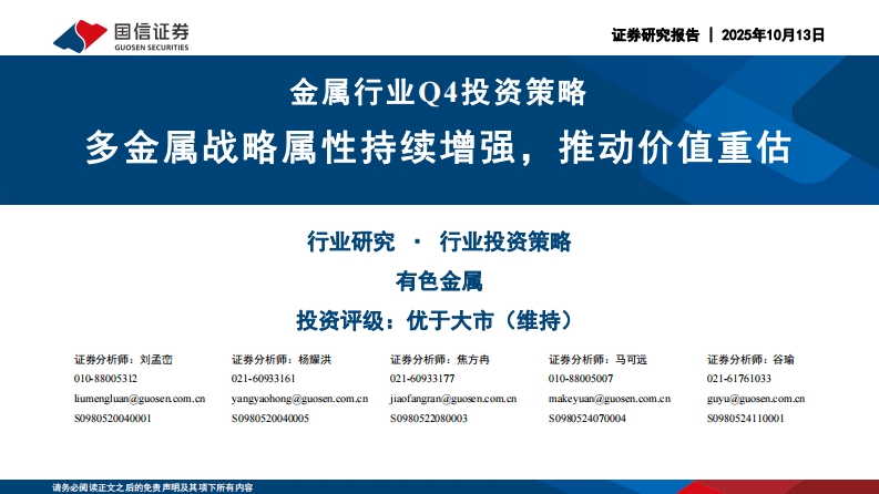 2025-10-13-国信证券--金属行业Q4投资策略:多金属战略属性持续增强,推动价值重估
