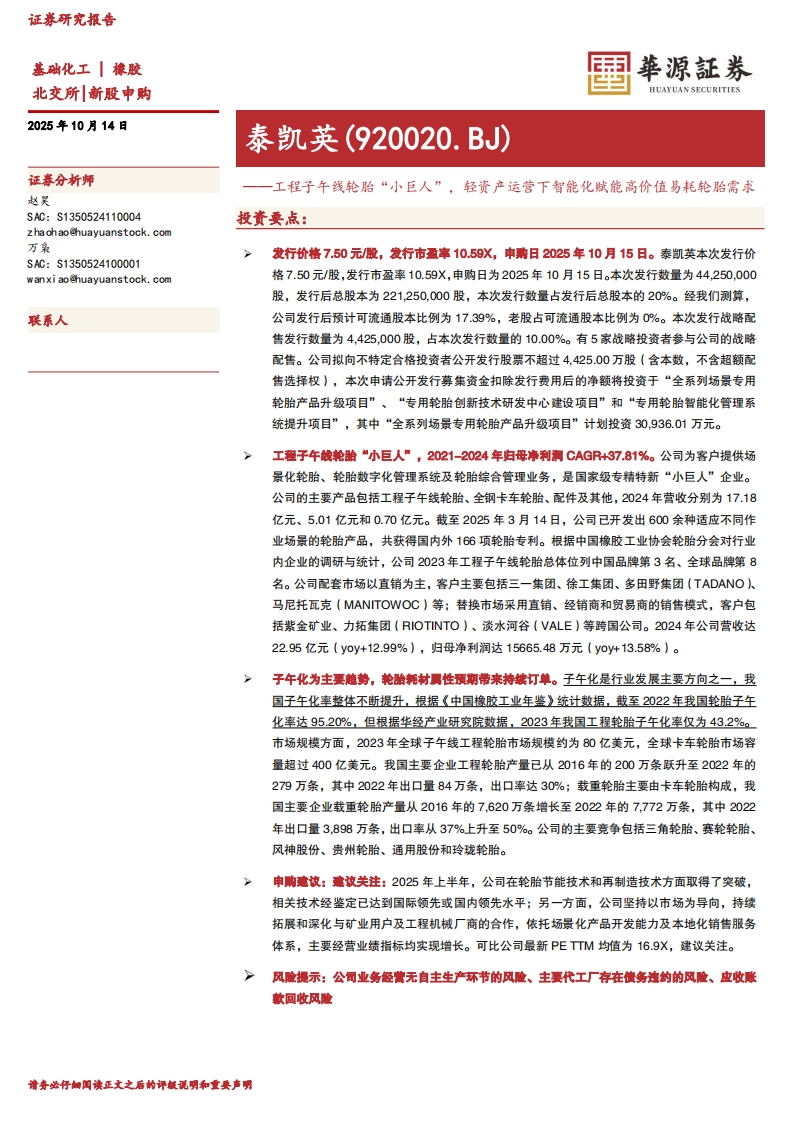 2025-10-14-华源证券-泰凯英-工程子午线轮胎“小巨人”,轻资产运营下智能化赋能高价值易耗轮胎需求