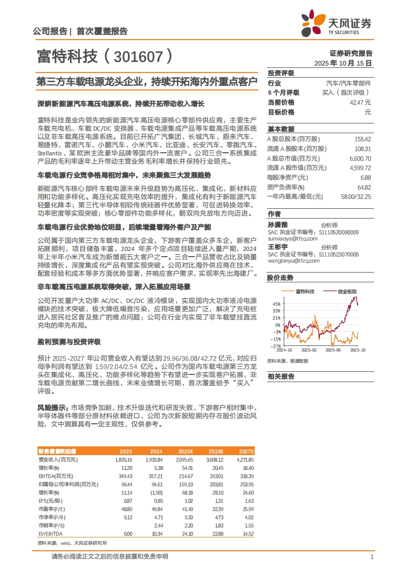 2025-10-15-天风证券-富特科技-第三方车载电源龙头企业,持续开拓海内外重点客户