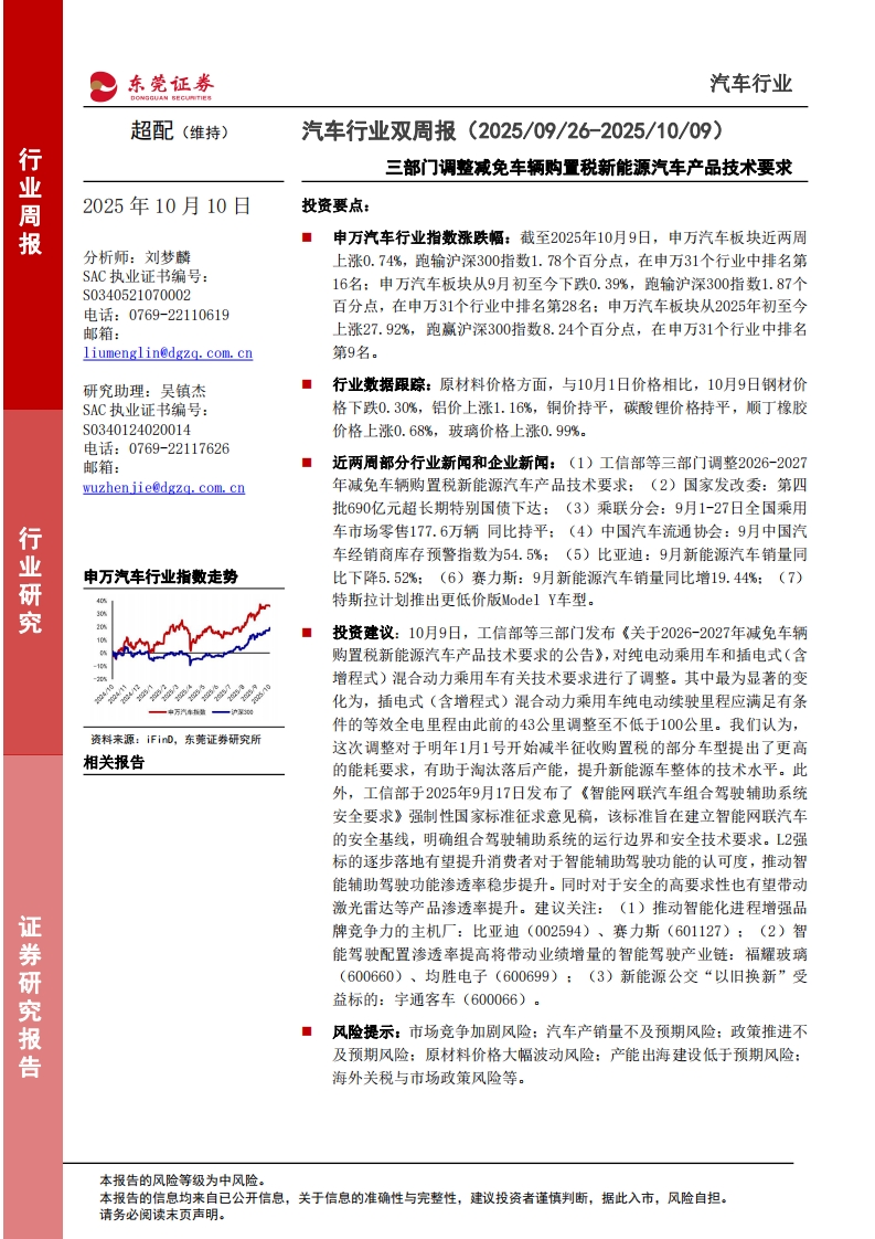 2025-10-10-***--汽车行业双周报:三部门调整减免车辆购置税新能源汽车产品技术要求
