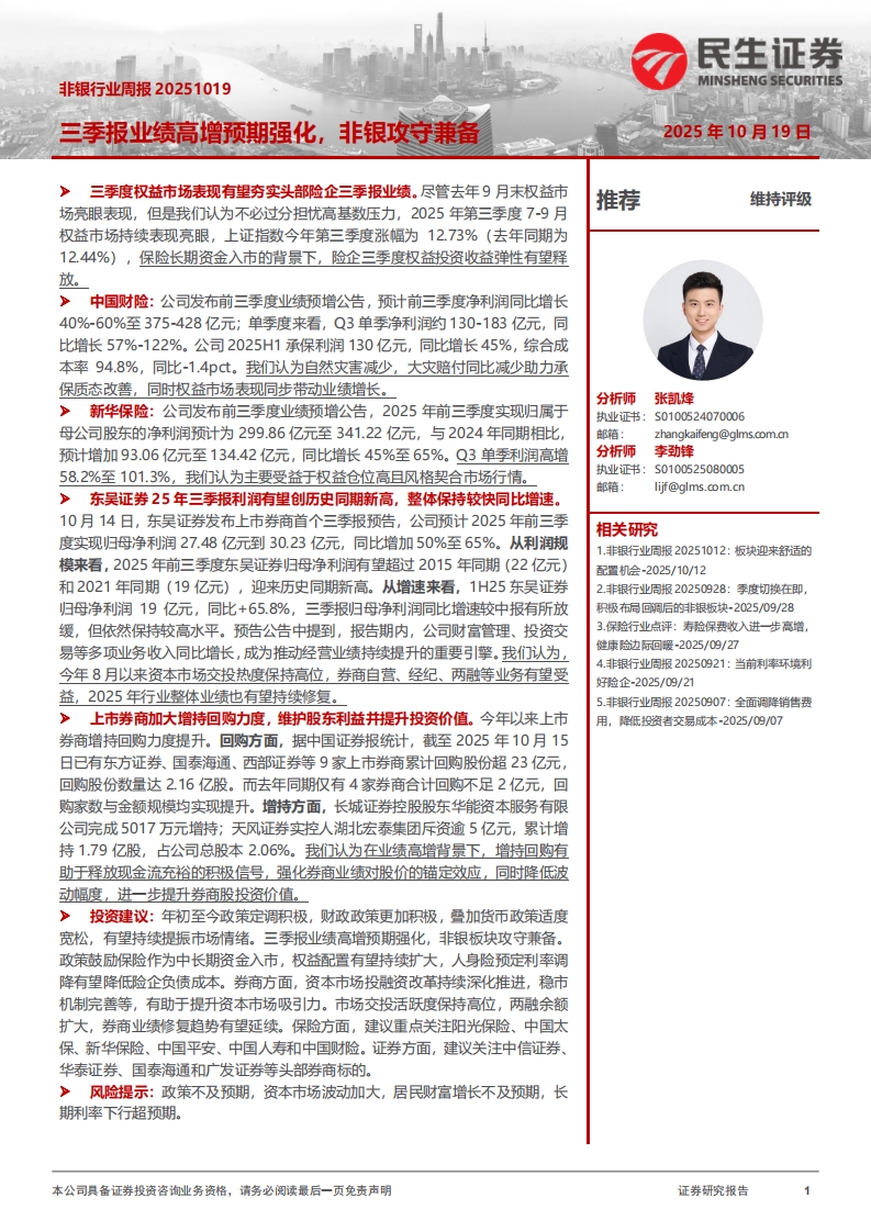 2025-10-19-民生证券-非银行业周报:三季报业绩高增预期强化,非银攻守兼备