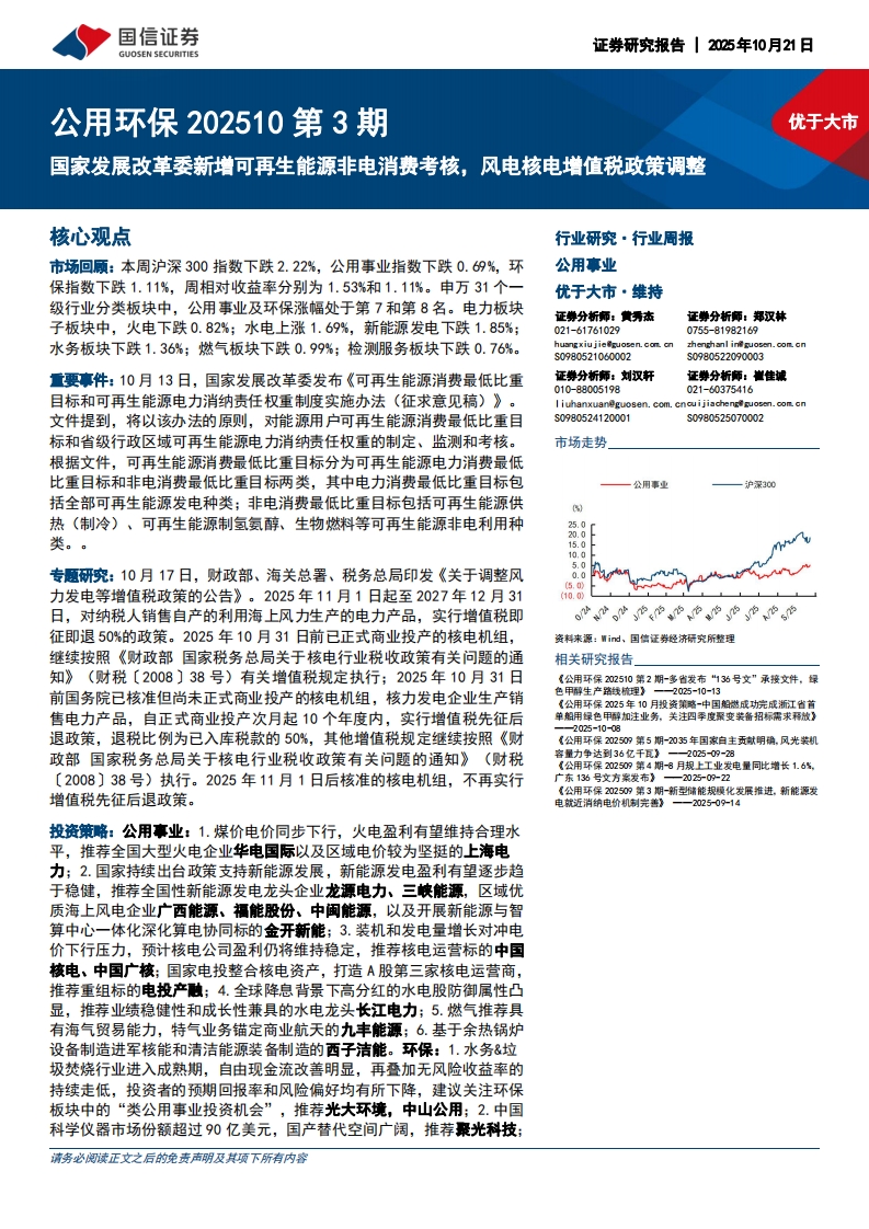 2025-10-22-国信证券-公用环保行业202510第3期:国家发展改革委新增可再生能源非电消费考核,风电核电增值税政策调整