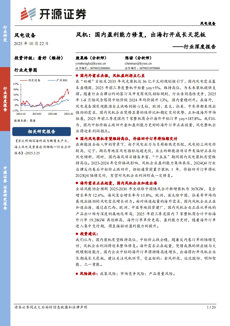 2025-10-24-开源证券--风电设备行业深度报告:风机:国内盈利能力修复,出海打开成长天花板